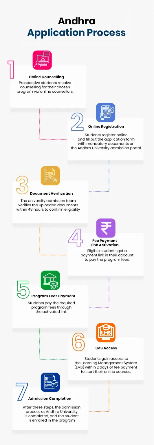 Through its online programs, Andhra University offers flexible and accessible education, allowing students to pursue undergraduate and postgraduate degrees in various disciplines. The curriculum is designed to meet current industry standards and is delivered through a robust digital platform. Students benefit from a blend of theoretical knowledge and practical skills, ensuring career readiness. The university also provides interactive learning tools, recorded lectures, and personalised academic support, enabling learners to study anytime, anywhere.